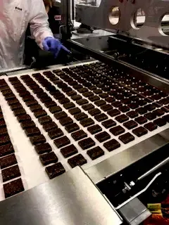 English Bay has a variety of production and packaging lines for dry blends; chocolate products and bars including: Imperial moulding lines; Nielsen enrobing lines; Tanis T-bar lines, and robotic Bosch (Syntegon) packaging lines. All our systems include strict quality checks for weight; size; and metal detection.